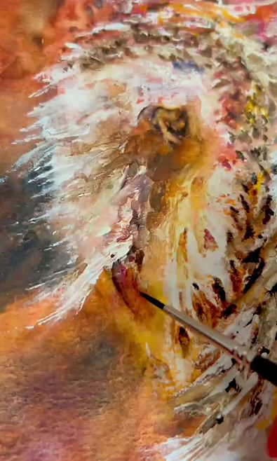 Come artista, l’acqua è il mio elemento guida: scioglie il controllo razionale, libera l’emozione e le permette di fluire sulla tela.